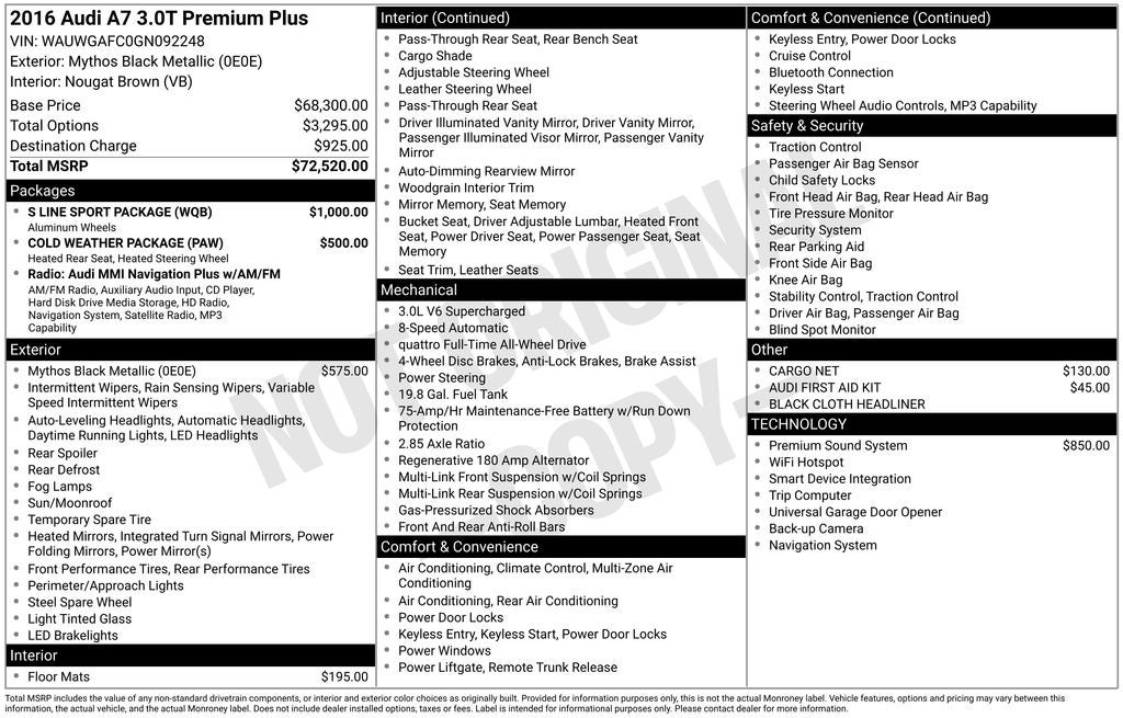 - Vehicle Name: Audi A7