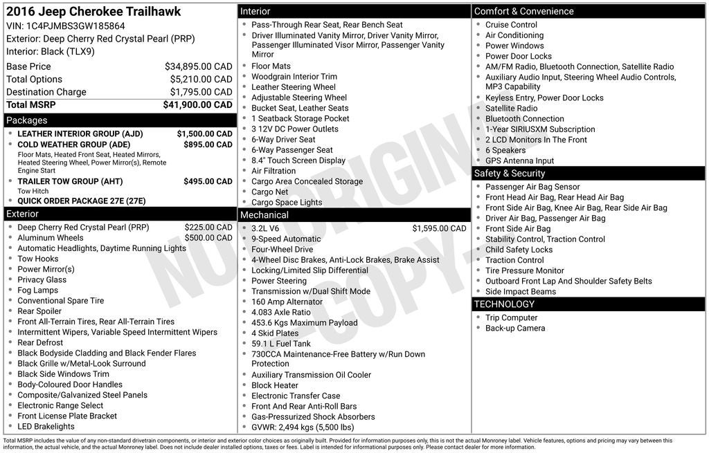 Unleash your adventurous spirit with this stunning 2016 Jeep Cherokee Trailhawk. Boasting a powerful 3.2L V6 engine, 9-speed automatic transmission, and capable 4WD system, this Trailhawk model is primed to conquer any terrain with confidence. Adorned in a bold Red exterior, this Jeep Cherokee is more than just a pretty face – it's a rugged, off-road-ready companion ready to take you on your next unforgettable journey.