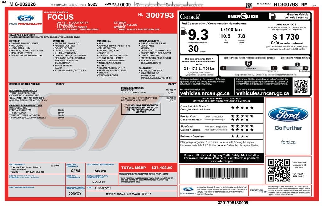 Elevate your driving experience with this stunning 2017 Ford Focus ST Power Moonroof. Boasting a captivating yellow exterior and a host of premium features, this sporty hatchback is poised to deliver an unparalleled blend of performance and sophistication.