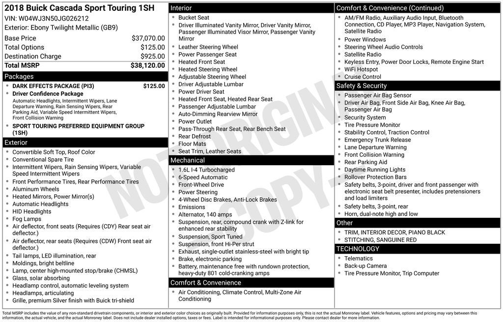 - Vehicle Name: Buick Cascada