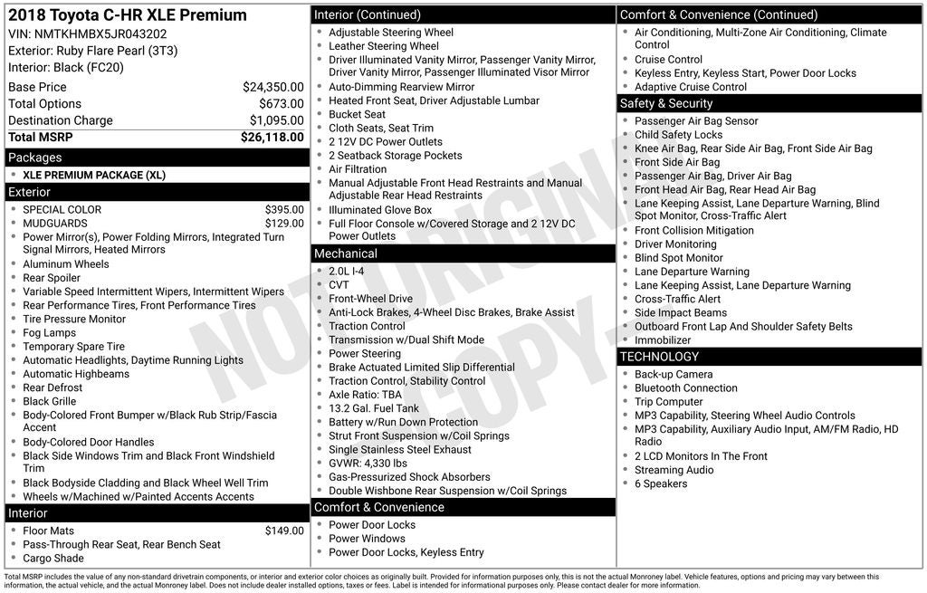 - Vehicle Name: Toyota C-HR