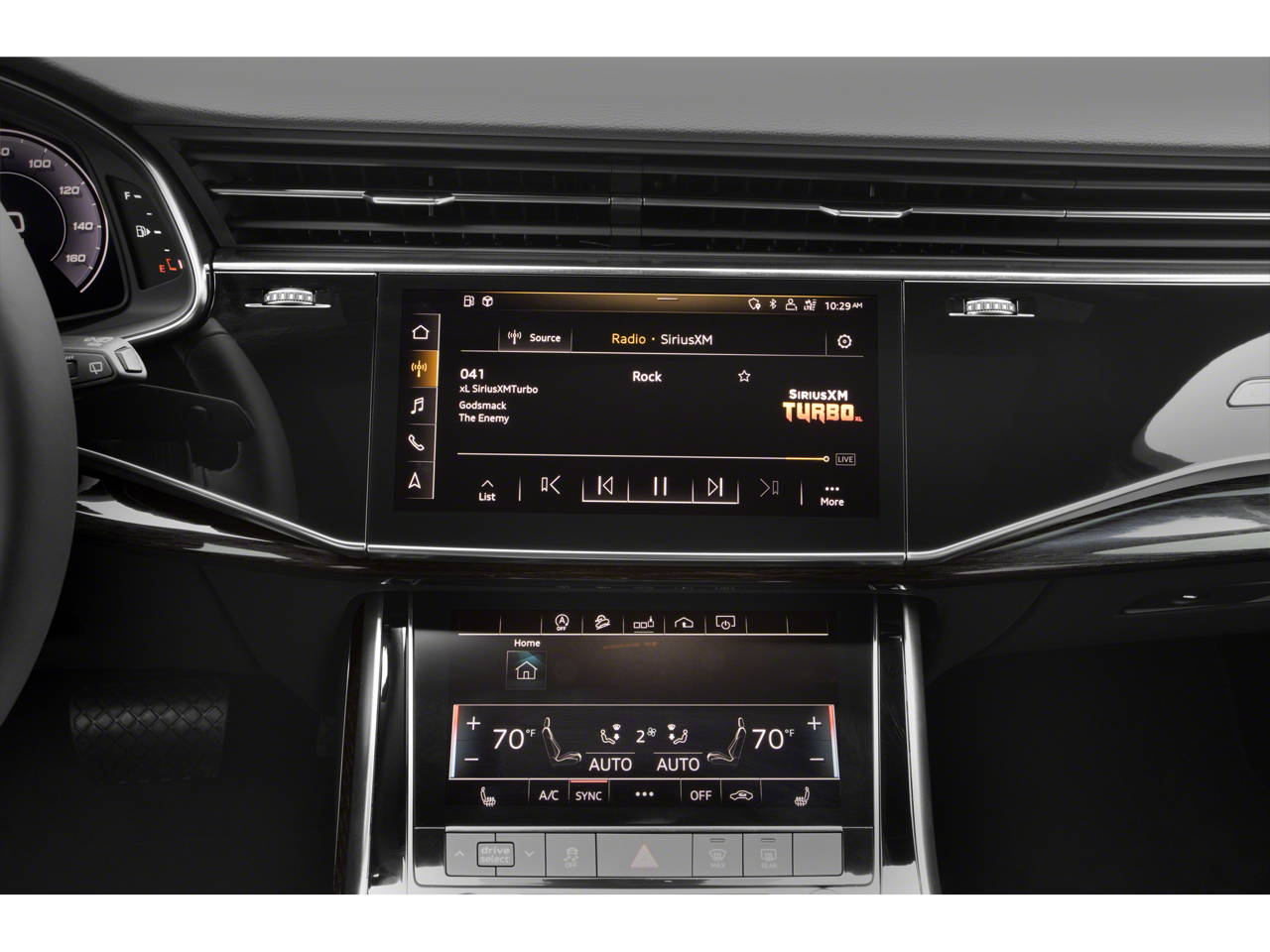 - Radio: Audi Sound System -inc: Audi smartphone interface (wired Android Auto and wireless Apple CarPlay), MMI navigation plus w/MMI touch response - 10.1" upper, 8.6" lower screen, preparation for mobile phone (Bluetooth®) and SIRIUS satellite radio (w/3-month complimentary subscription)