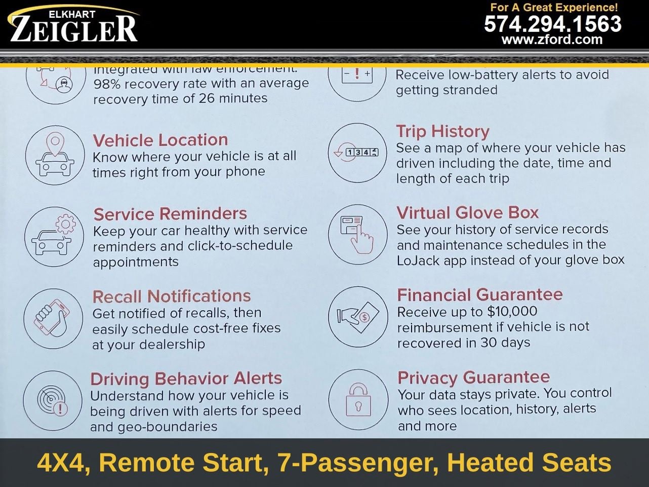 At Zeigler Ford Lincoln of Elkhart, Home of the BEST PRICE GUARANTEE & GUARANTEED FINANCING, we take pride in treating our customers like family, ensuring that your experience is one that you will NEVER forget. Every vehicle has been through a 172-point safety inspection completed by a certified technician and fully detailed. Pre-Owned Ford Vehicles 2018-2017-2016-2015-2014-2013-2012-2011-2010-2009-2008-2007-2006 Ford Escapes, Fusions, Focus, Edges, Flex, F- Series, Heavy Duty Diesel Trucks and more For sale. Take advantage of our VIP internet experience by calling 574-970-5225 to schedule a test drive. Read our customer reviews at www.zeiglerfordelkhart.com/reviews or visit us on the web at www.zford.com, or stop by today, located at 2525 Bypass Rd. Elkhart, IN 46514. We are proud to service customers saving YOU time & money on ANY New or Pre-owned vehicle! Credit Union Financing, Special LOW Interest Rates available. Poor Credit, No Credit, FIRST TIME BUYERS!! Past Bancruptcy... All are welcome to apply for financing TODAY!! See dealer for complete details, dealer is not responsible for pricing errors, all prices, plus tax, title, and plate fees. Serving Michigan and all of our surrounding cities like Goshen, South Bend, Granger, Osceola, Mishawaka, Warsaw, Plymouth, Niles, Union, Edwardsburg, Bristol, Shipshewana, & including the entire Michiana area, and anywhere in the great state of Indiana. Some of our used vehicles may be subject to unrepaired safety recalls. Check for a vehicle's unrepaired recalls by VIN at http://vinrcl.safercar.gov/vin/. Zeigler Ford- FOR A GREAT EXPERIENCE.