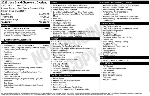 2023 Jeep Grand Cherokee L Overland Diamond Black Crystal Pearlcoat