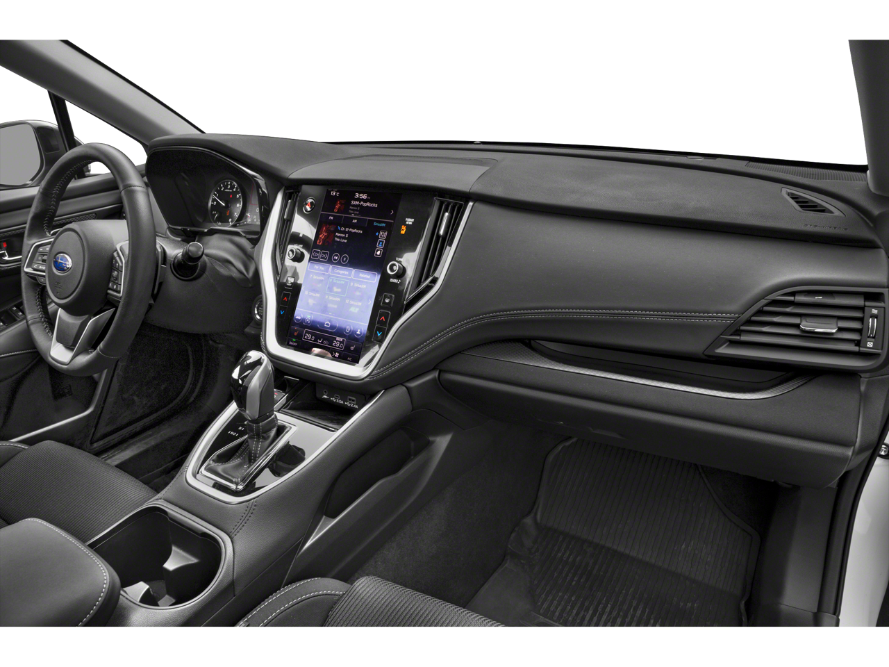 The Legacy Premium's exterior is adorned in a sleek Silver finish, complemented by the bold presence of the black fog light aerodynamic covers and LED fog lights. Step inside and you'll be greeted by a spacious, well-appointed cabin featuring premium cloth upholstery, heated front seats, and a 11.6-inch Subaru STARLINK Multimedia Plus system with intuitive controls.