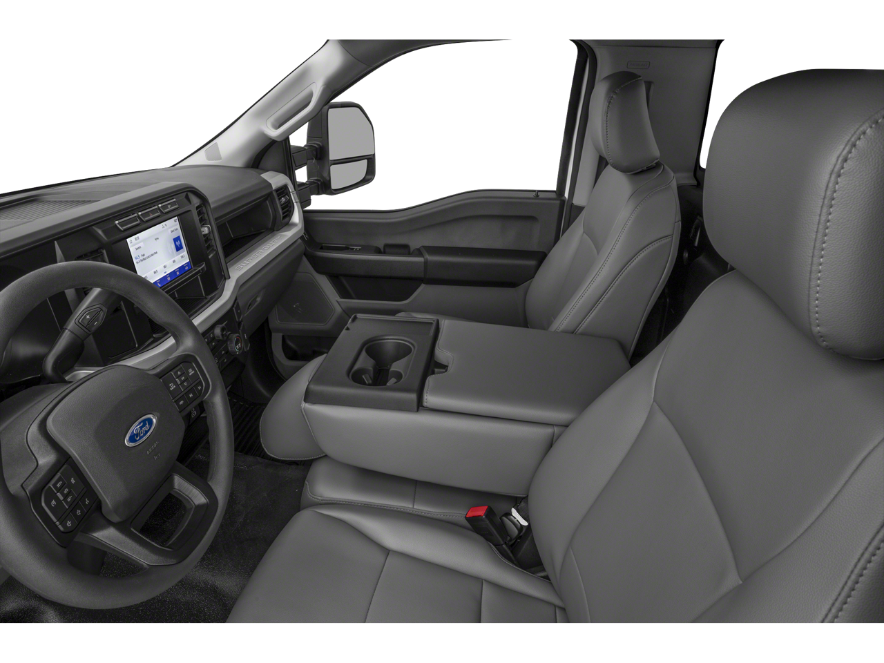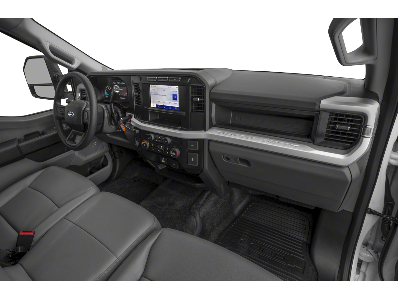 Inside, the cabin offers a practical and well-appointed environment, with features like the SYNC 4 infotainment system, remote start, and upfitter switches that allow you to customize the vehicle to suit your specific needs. The 40/20/40 split bench seat with a front center armrest provides ample comfort and versatility, ensuring you and your crew can ride in comfort, even on the longest hauls.