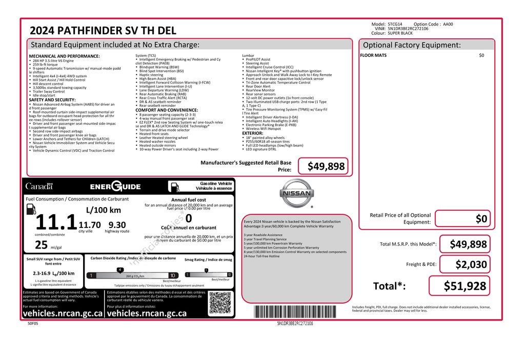 The 2024 Nissan Pathfinder SV is a versatile and capable SUV that's ready to take on your next adventure. With its powerful 3.5L V6 DOHC engine, 9-speed automatic transmission, and 4-wheel drive, this Pathfinder delivers an impressive blend of performance and efficiency, boasting up to 27 highway MPG.