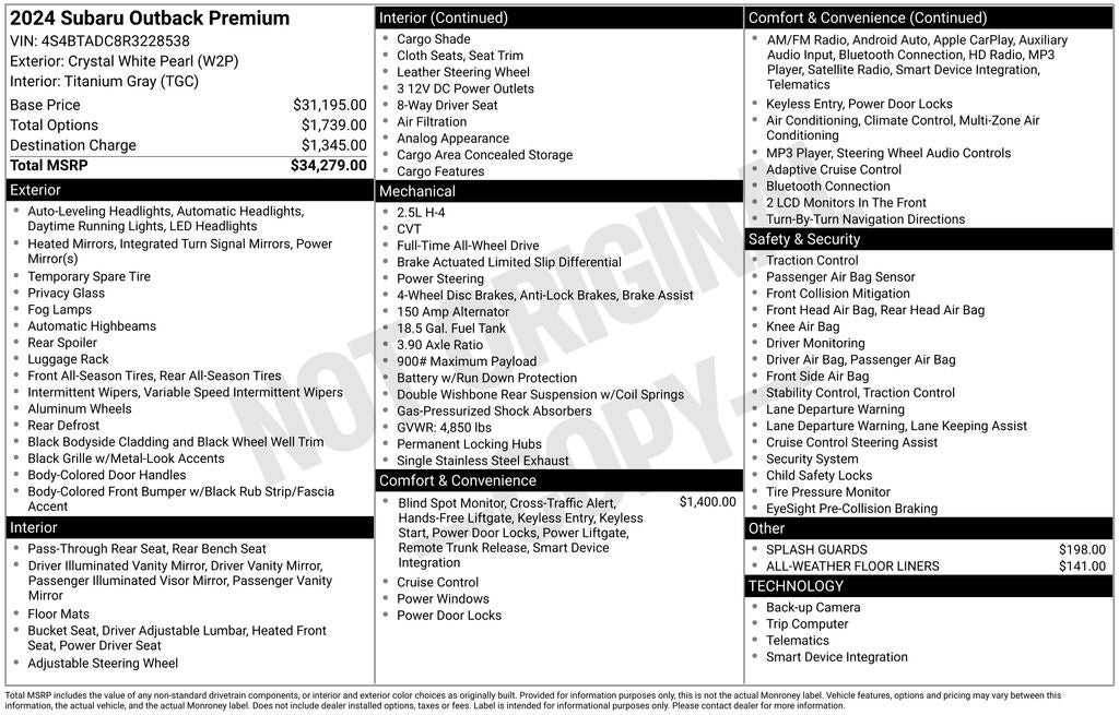 - Vehicle Name: Subaru Outback