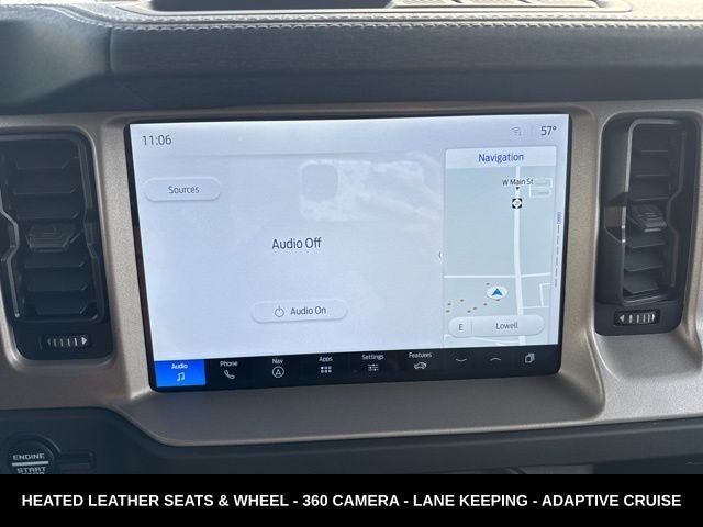 **SUMMER TIME READY**SOFT TOP**AMAZING COLOR**HEATED SEATS**12 TOUCHSCREEN WITH NAVIGATION**360 DEGREE CAMERA**ADAPTIVE CRUISE CONTROL**REMOTE START**FOUR WHEEL DRIVE**FULLY INSPECTED AND SERVICED**Desert Sand 2025 Ford Bronco Outer Banks SOFT TOP 4WD 10-Speed Automatic 2.7L EcoBoost V6 *NAVIGATION, *FULLY SERVICED, *REMOTE START, *REARVIEW CAMERA, *LEATHER HEATED SEATS, 360-Degree Camera, Adaptive Cruise Control, Equipment Group 314A Lux Package, Evasive Steering Assist, Front Parking Sensors, Information on Demand Panel, Radio: B&O Sound System by Bang & Olufsen, Sideview Mirrors, Universal Garage Door Opener.